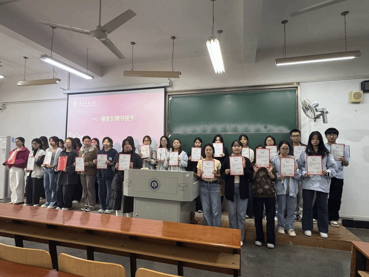 会议伊始,石亚楠老师为全体寝室长颁发聘书,并强调寝室长作为学院与同学间的“桥梁纽带”,肩负着维护宿舍安全、促进学风建设、调解同学矛盾等重要职责。她指出:每一份聘书都是一份责任,希望各位寝室长以高度的责任心投入工作,成为同学们信赖的‘贴心人’。