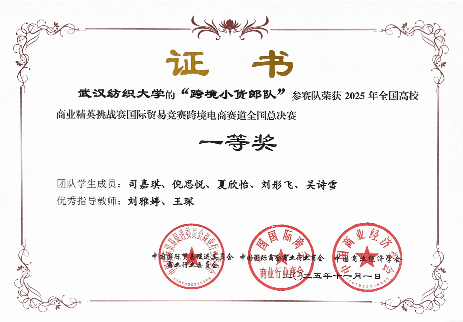 近日,全国高校商业精英挑战赛国际贸易竞赛跨境电商赛道全国总决赛圆满落幕。本届赛事吸引了来自全国28个省、自治区、直辖市的近500所高校、超5000支队伍同台竞技。经过激烈角逐,外国语学院商务英语专业司嘉琪同学领衔的“跨境小货郎”团队(商英司嘉琪,税收倪思悦,电信夏欣怡,英语刘彤飞,数媒吴诗雪)在刘雅婷和王琛老师的指导下斩获全国总决赛一等奖。