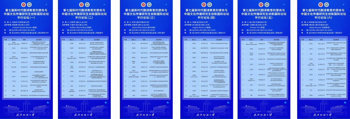 本次论坛由湖北省翻译工作者协会与武汉纺织大学联合主办,武汉纺织大学、武汉理工大学、中南民族大学、湖北工业大学、武汉轻工大学、湖北中医药大学六所高校外国语学院共同承办,传神语联网网络科技股份有限公司、四川语言桥信息技术有限公司等四家语言服务企业协办,以“创新赋能翻译实践,协同共促学科发展”为主题,汇聚国内外学界专家、高校师生及业界代表,共话翻译教育发展与中国文化国际传播新方向。本次论坛以校际协作、国际联动、产学研融合为特色,不仅展现了研究生的学术研究成果与创新能力,更凝聚了翻译学科发展共识,对推动翻译教育提质增效、助力中国文化国际传播具有重要意义。