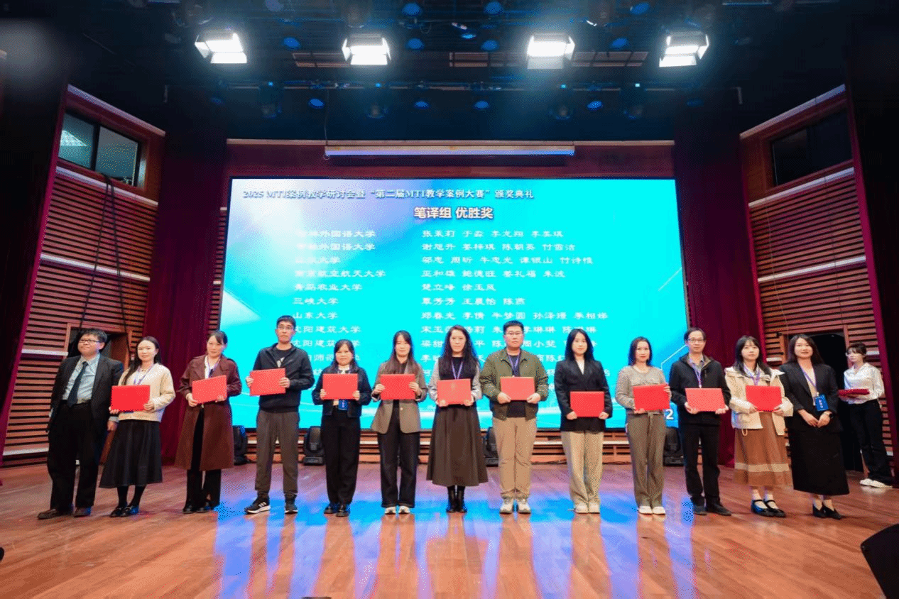 近日,由全国翻译专业学位研究生教育指导委员会指导,上海市科技翻译学会主办,上海理工大学外语学院、上海应用技术大学外国语学院承办的MTI案例教学研讨会暨“第二届MTI教学案例大赛”颁奖典礼在上海应用技术大学举行。我校外国语学院MTI教育中心教师团队凭借出色的教学设计与创新实践取得佳绩:刘珊老师团队荣获二等奖,柯细香老师团队获优胜奖。