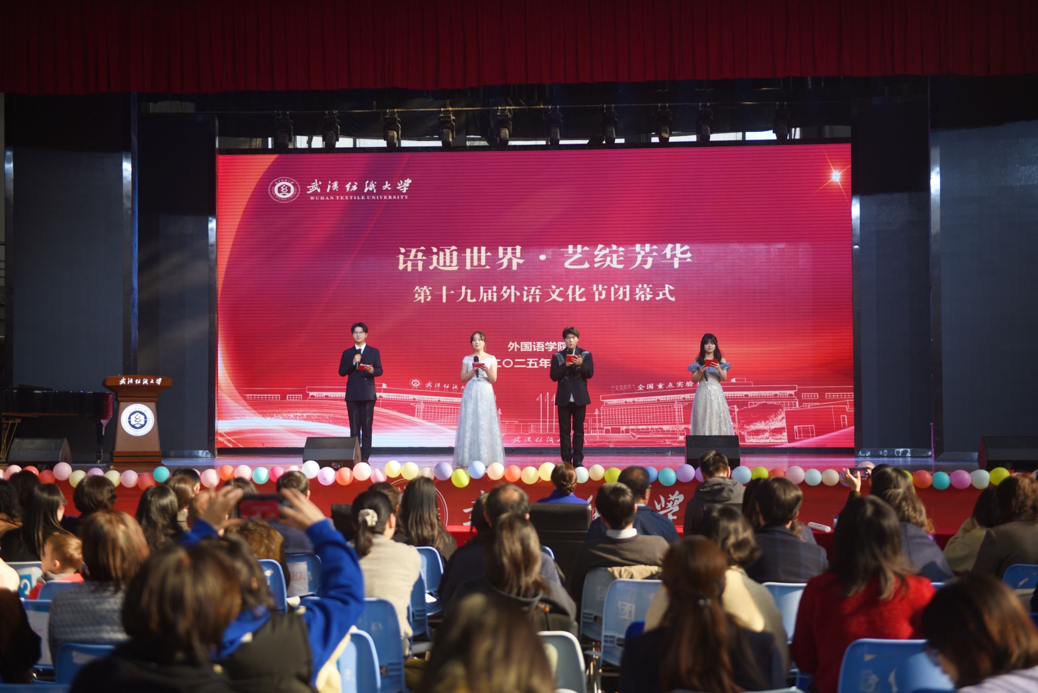 12月11日下午,以“语通世界·艺绽芳华”为主题的第十九届外语文化节闭幕式在阳光校区大学生活动中心举行。外语文化节自2007年创办以来,历经十九载积淀,已成为我校校园文化建设的一张亮丽名片,并于“十四五”期间获列为校园文化重点立项建设项目。学校学生工作部、研究生院、团委、国际交流与合作处相关负责人,外国语学院全体师生和800余名观众齐聚现场,共同见证这场融合语言、艺术与人文情怀的校园文化盛会。
