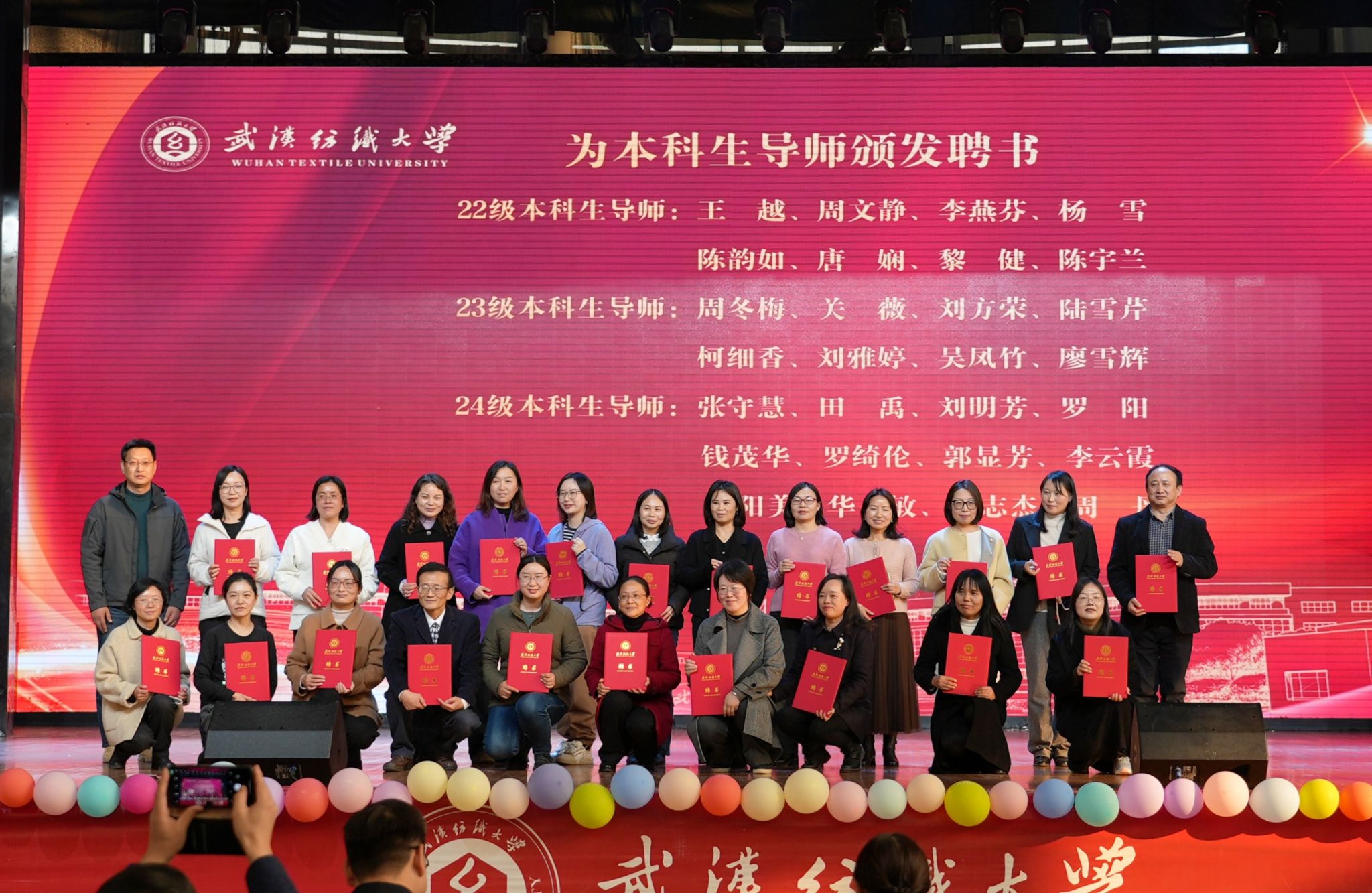 第三篇章“情谊绵长,师心相传” 将活动推向情感高潮。师生同台演绎的伴唱 Five Hundred Miles、研究生话剧 Anti-Fraud、深情独唱 Nothing's Gonna Change My Love For You等节目,生动诠释了师生间亦师亦友的深厚情谊。古典舞《青子吟》融合传统韵味与现代编排,朗诵书法表演 Virginibus Puerisque and Other Papers 则展示了跨学院合作下的人文素养。在本篇章中,校团委副书记侯畅为外语文化节系列分项赛事的获奖集体与个人代表颁奖;学生工作部副部长朱美龙为受聘的本科生导师颁发聘书,标志着全员育人机制再深化。研究生院副院长张强、外国语学院党委书记汪仕辉、国际交流与合作处副处长邹满玲在互动环节先后抽取幸运观众,将活动推向高潮。
