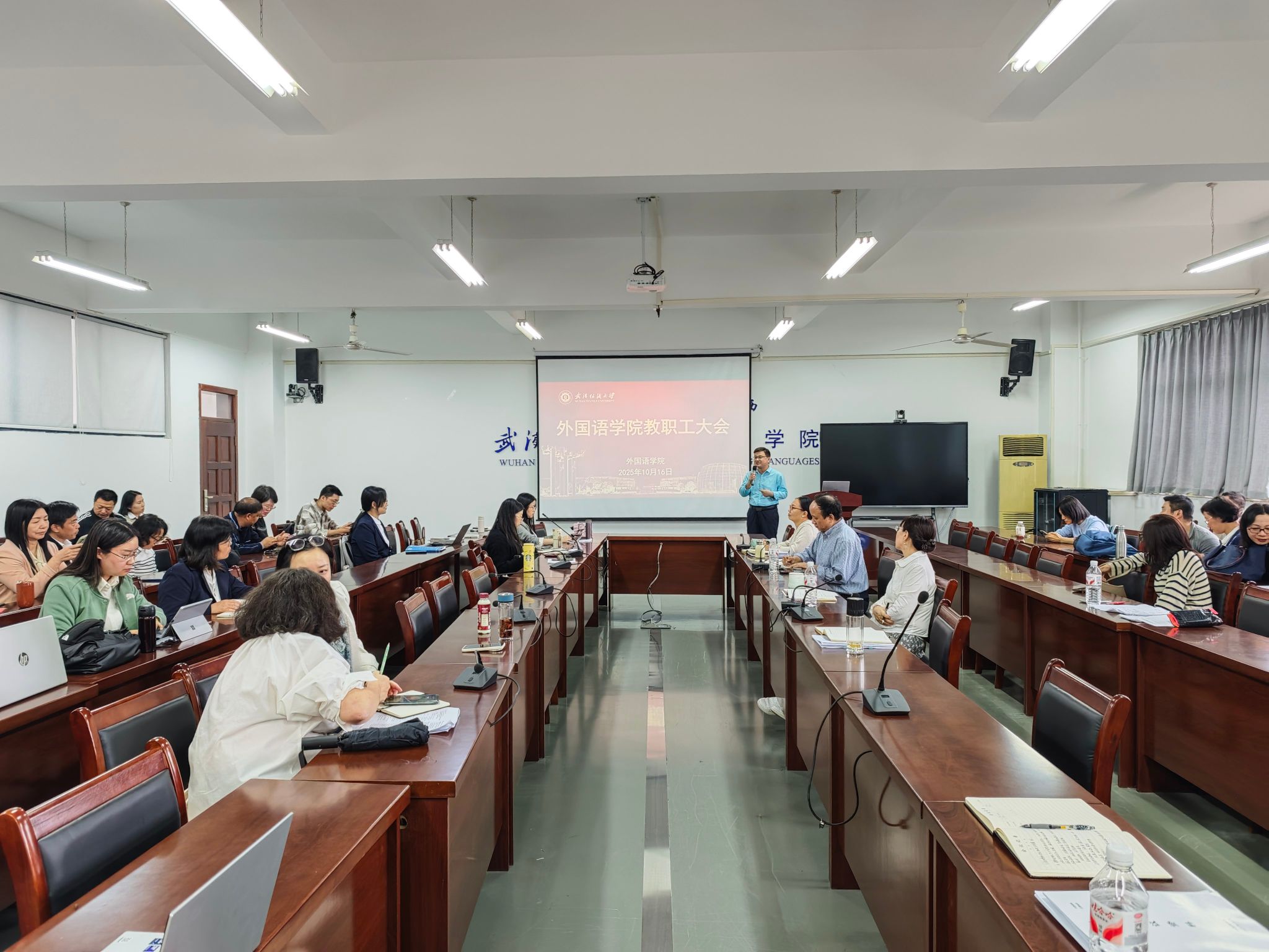 10月16日下午,外国语学院在04-303会议室召开全体教职工大会,开展政治理论集中学习,学院党委书记汪仕辉主持会议,全体教职工参加会议。