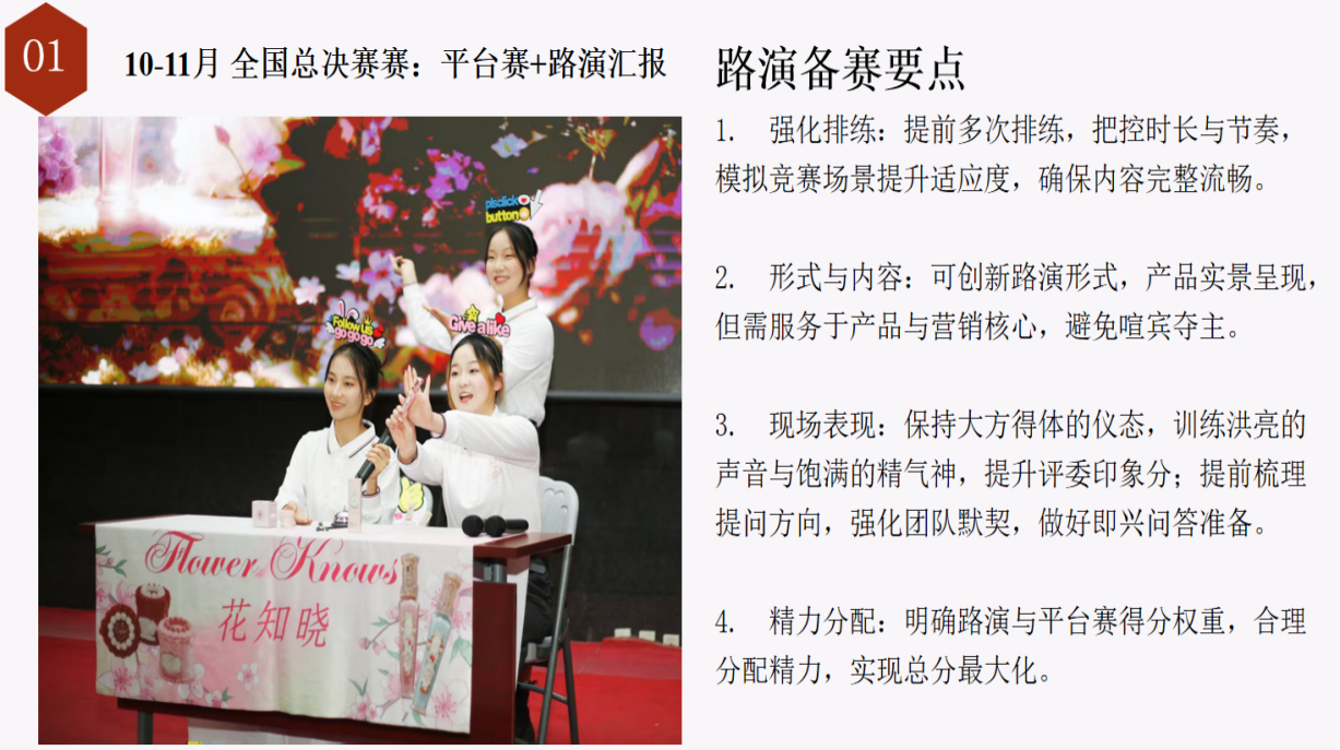 柯细香的分享则紧密围绕外国语学院学生参与度高的iCAN全国大学生创新创业大赛、“亿学杯”跨境电商数字营销大赛、全国高校商业精英挑战赛等重点赛事展开。她针对赛事不同阶段,提供了从平台赛答题技巧、区域赛策划书撰写到总决赛路演表现的全流程精细化指导。柯细香特别强调了暑期学生社会实践与学院“科创杯”活动对备赛的关键支撑作用。她指出,学生在社会实践中积累的田野调研资料、市场洞察力和文化感知,可直接转化为跨境电商选品策划、文旅宣传短视频的鲜活素材与创意来源;而“科创杯”所锻炼的创新思维与技术应用能力,则为设计数字营销方案、优化直播技术提供了坚实基础。这种“专业知识+竞赛实践+社会实践+科创活动”的融合培养模式,有效提升了学生的跨文化商务实操能力与综合素养。