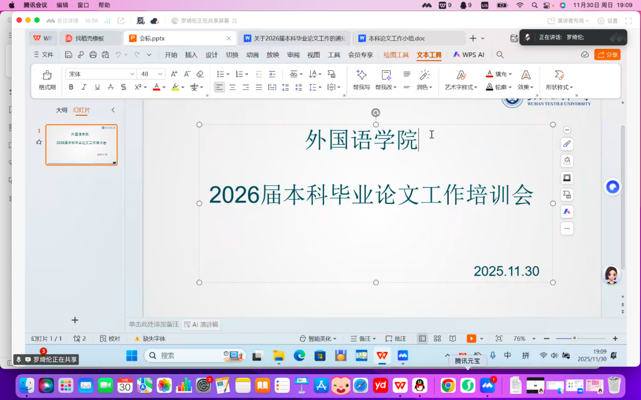 11月30日晚7点,外国语学院通过腾讯会议平台举行了2026届本科毕业论文工作培训会。外国语学院26届本科毕业论文指导教师参加此次会议。