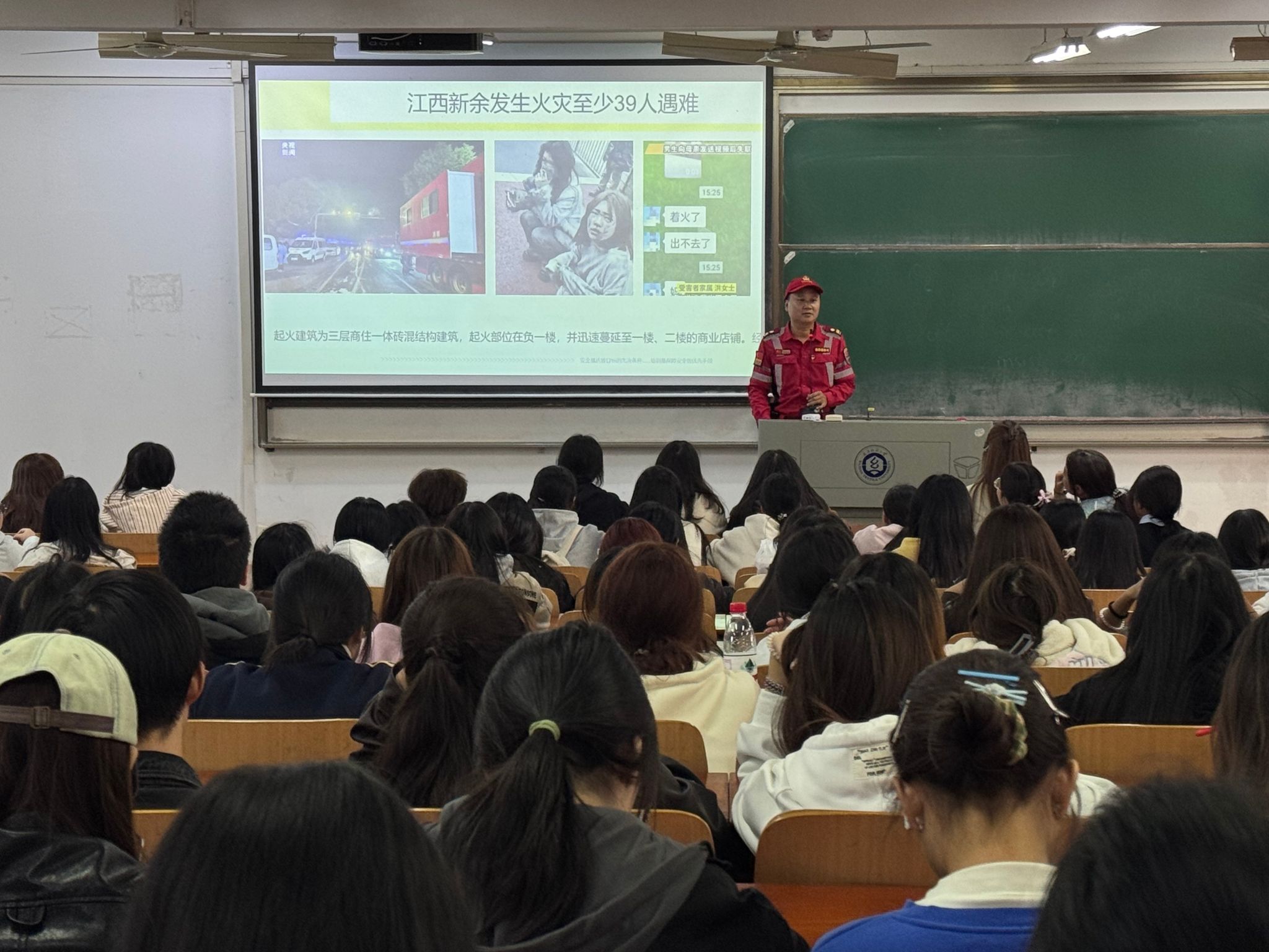 张老师结合实际,特别提及了北京市消防局起火事件以及江西新余火灾等真实案例。他详细讲述了这些火灾事故的发生经过、造成的严重后果以及救援过程中的艰难险阻。这些真实案例就像一记记警钟,时刻提醒着新生们要重视消防安全,从自身做起,杜绝一切可能引发火灾的行为。