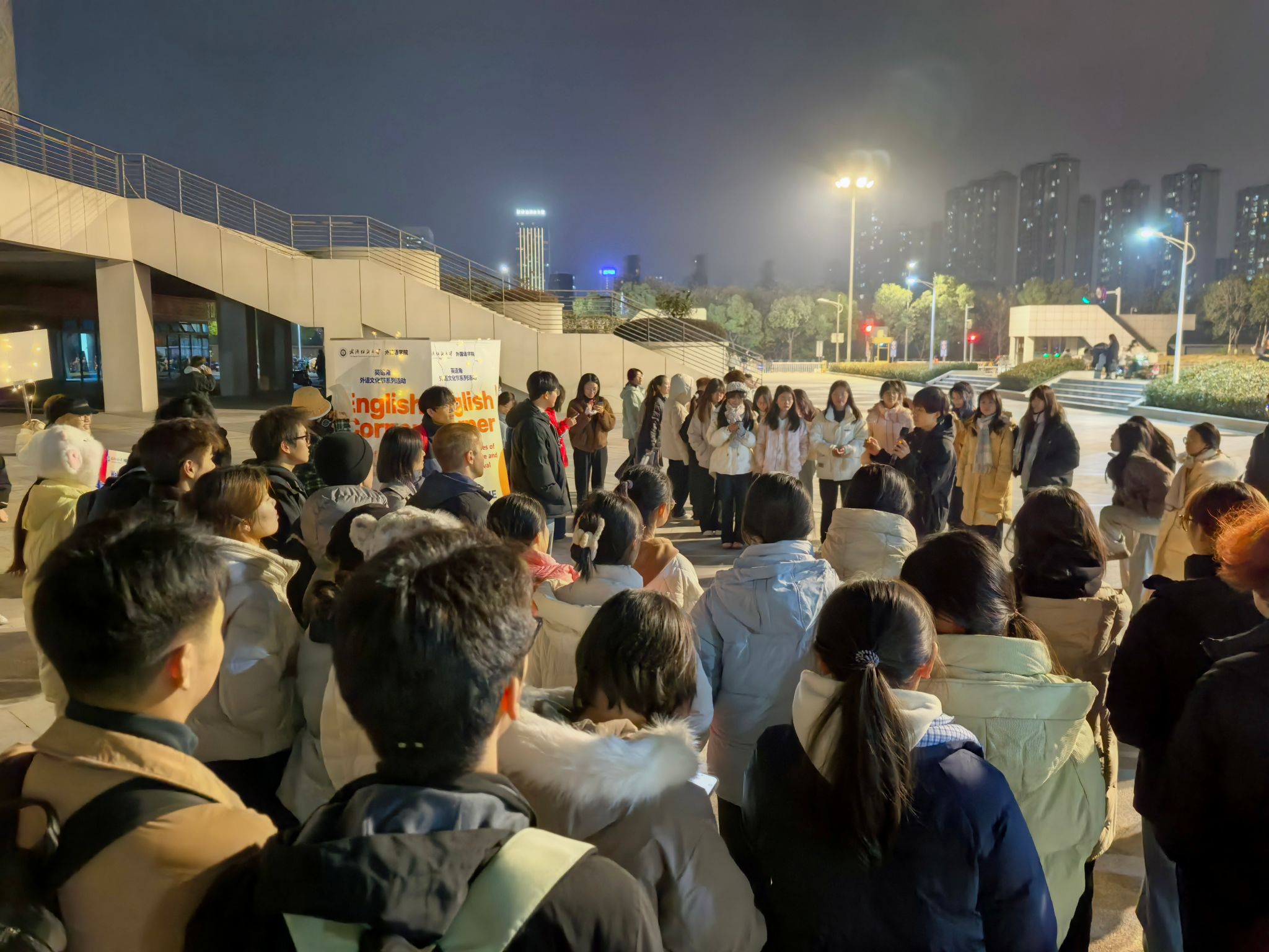 12月4日,武汉纺织大学外国语学院在阳光校区与南湖校区成功同步举办校园英语角活动。本次活动吸引了两个校区共计约400名师生踊跃参与,学院领导班子成员、专业教师及外籍教师共同到场,与同学们进行面对面交流,活动现场气氛热烈,学术与文化交流氛围浓厚。