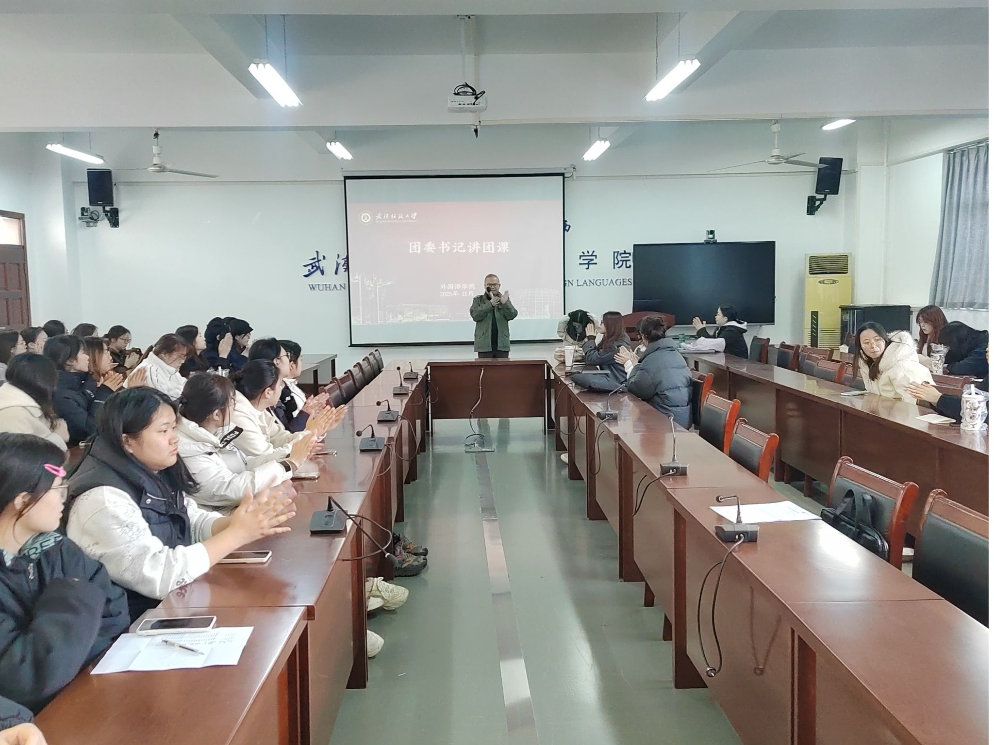 为深化团员青年思想引领,筑牢成长根基,外国语学院团委于2025年11月组织举办了“青年成长力”秋季学期集中系列团课。学院党委副书记彭阳慈航、辅导员聂啸天、石亚楠三位老师分别主讲,系列课程围绕理想信念、历史传承与时代责任三个维度展开,学院各年级团学骨干、入党积极分子及团员代表参加了学习。