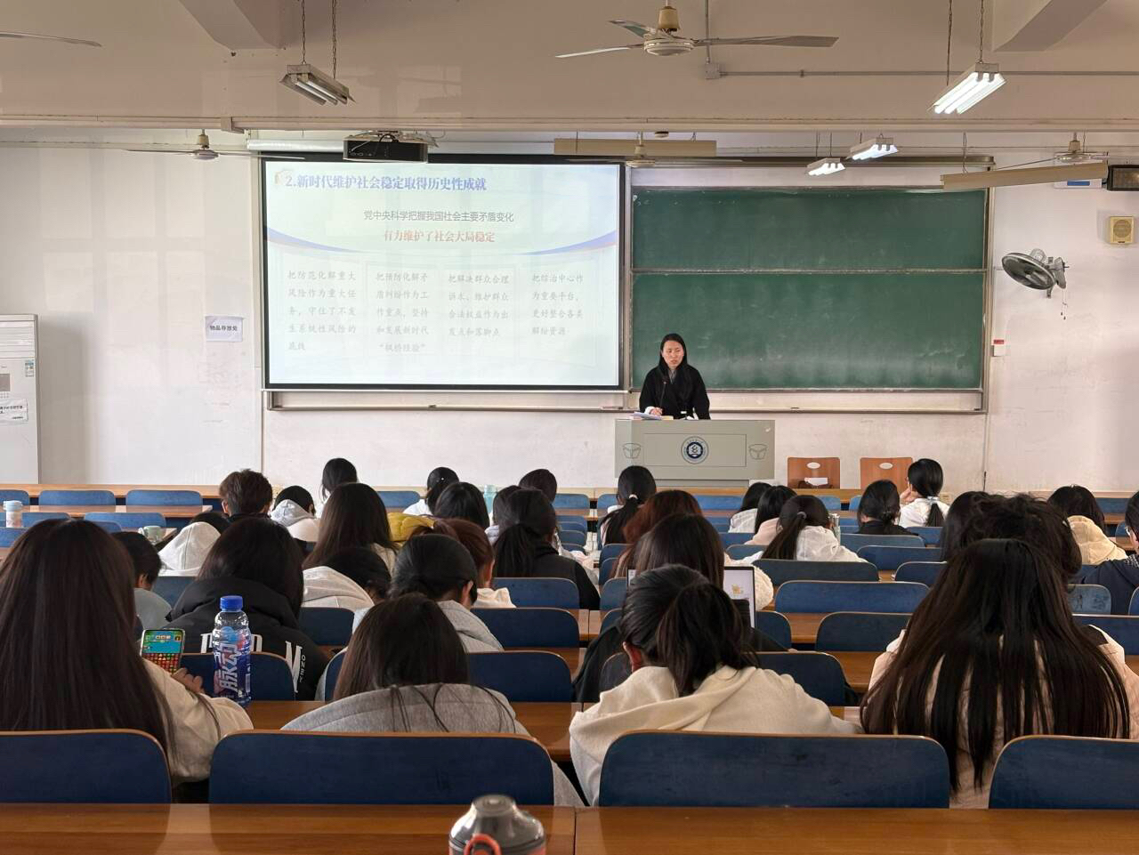 11月20日,在崇志楼119教室,石亚楠以“长治久安的时代基石”为题的,系统介绍了我国在平安中国建设、社会治理现代化等方面取得的历史性成就,深入解读了“总体国家安全观”的深远意义。石亚楠结合外语专业学生身处文化交流前沿的特点,强调青年学子必须深刻认识安全稳定大局的极端重要性,自觉增强国家安全意识,提升政治鉴别力,在对外交流中勇于批驳谬误、澄清事实,主动担当起维护国家意识形态安全与社会和谐稳定的青春责任。