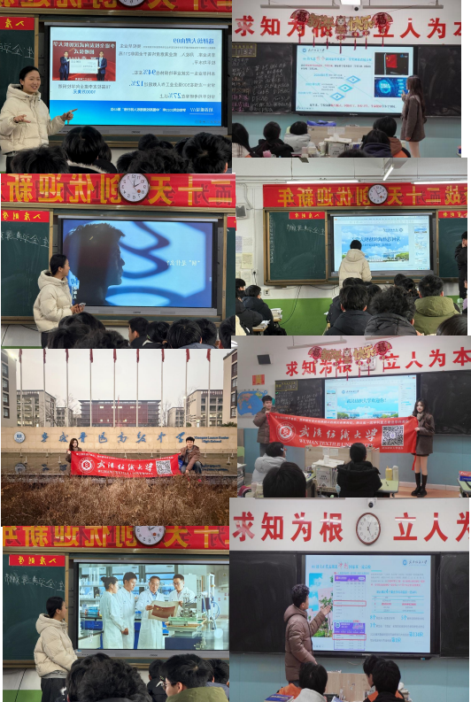 7.全面复盘与高考祝福:情系母校,期许未来活动结束后,团队对两场宣讲进行系统复盘,确保宣讲内容准确、互动充分、物料发放到位、联系渠道畅通。在活动尾声,团队成员向两校全体学子表达了诚挚的祝福与鼓励,寄语同学们坚守初心、科学备考, 并欢迎优秀学子未来报考武汉纺织大学,续写成长新篇章。