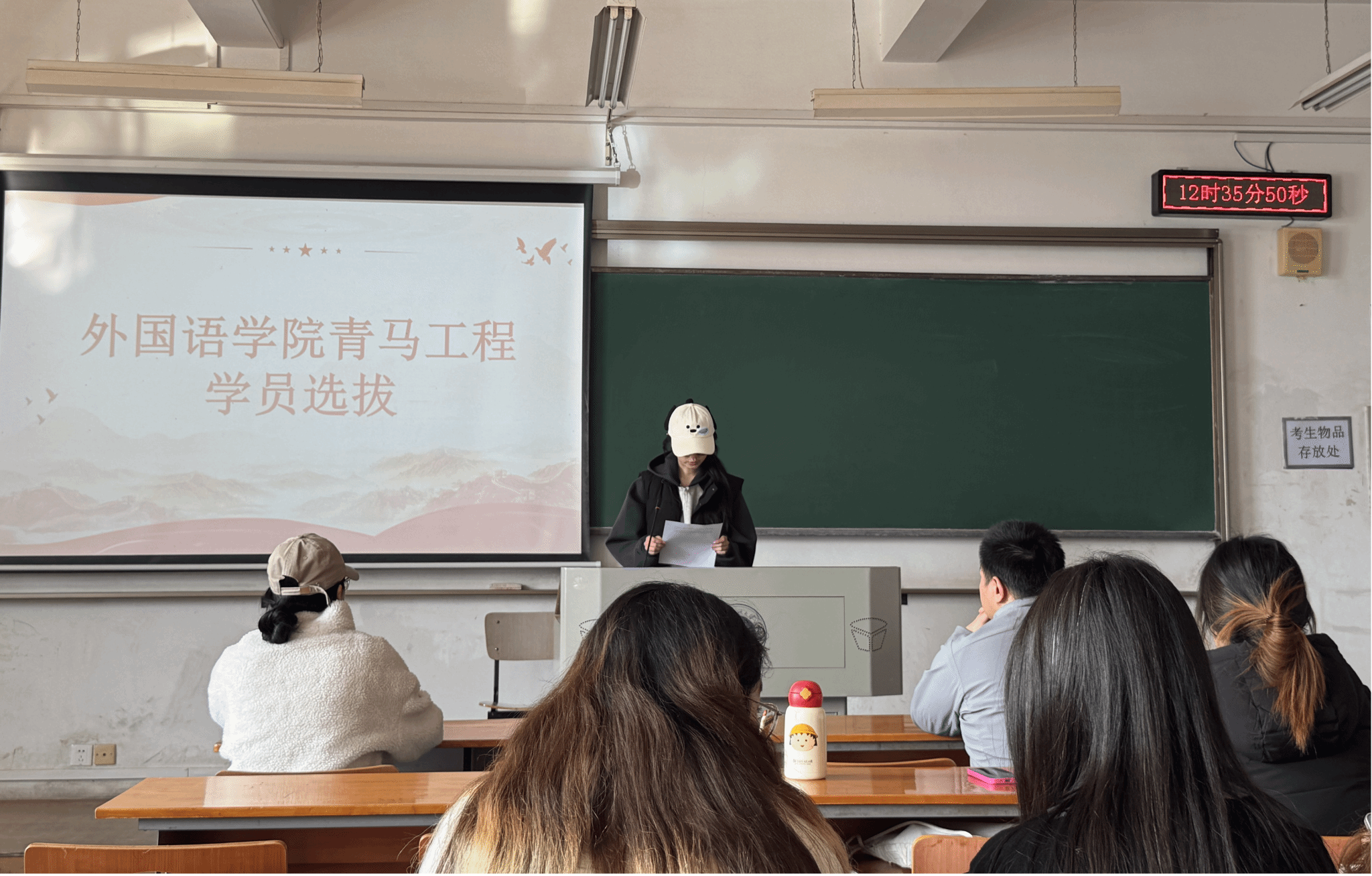 随后,学员选拔答辩环节有序进行。参选学员依次登台,围绕自身思想成长、学业成绩、学生工作经历及未来规划进行汇报展示,充分展现了外国语学院青年学子积极向上、勇于担当的精神风貌。