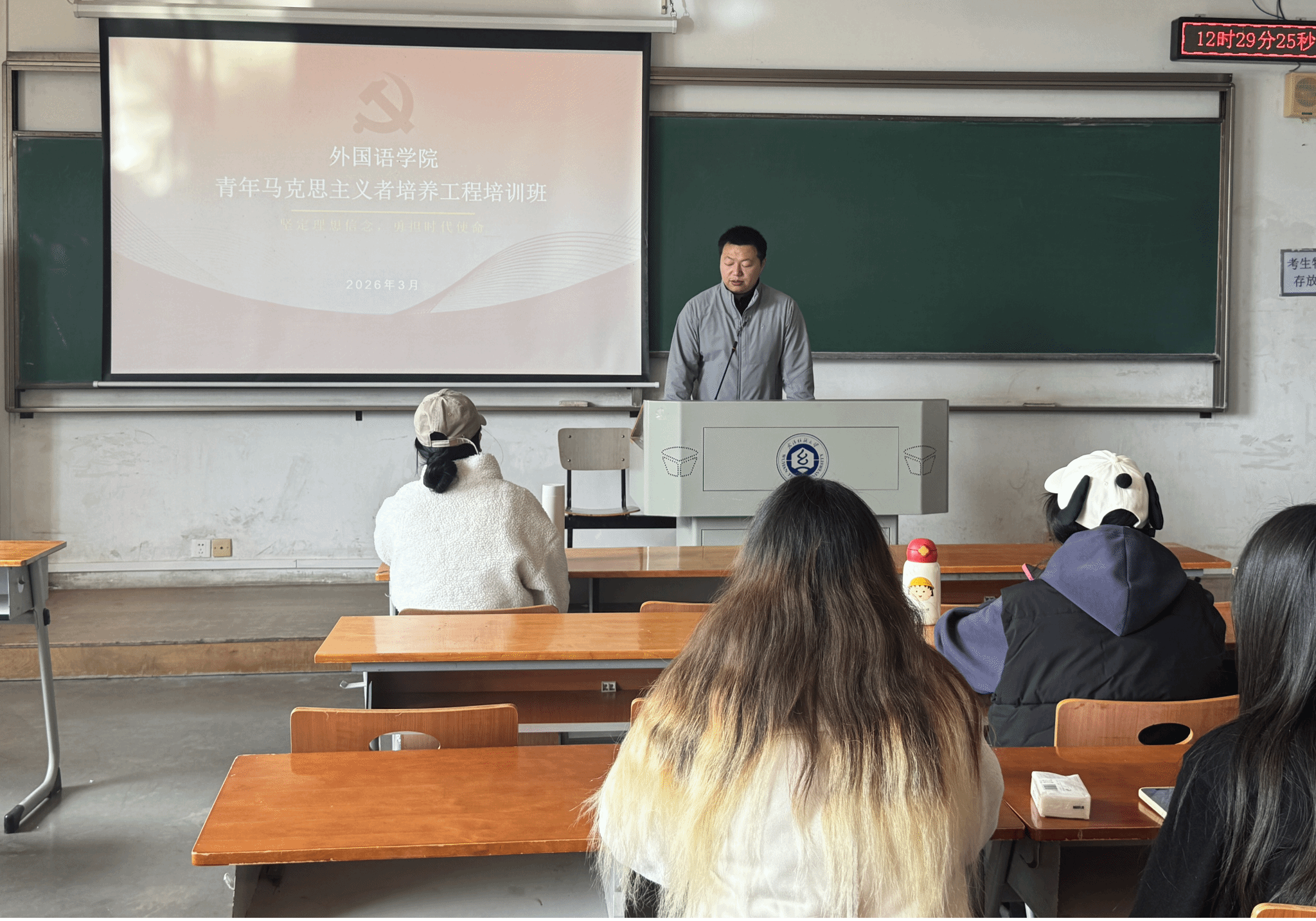 学院团委指导老师聂啸天以“筑牢信仰根基,讲好中国故事,争做新时代外语好青年”为核心主题,系统介绍了青马工程的时代背景、重要意义、培养目标与成长路径。结合外语专业特色,培训从理论铸魂、能力提升、实践淬炼三个维度展开深入讲解,引导学员在理论学习中坚定理想信念,在专业实践中锤炼过硬本领,在服务同学中涵养优良作风。